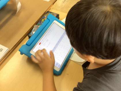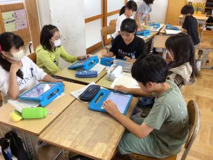 提案する内容を考えています。何度も悩み変更を重ねていく活動は、学習用タブレットとの相性がぴったりです。