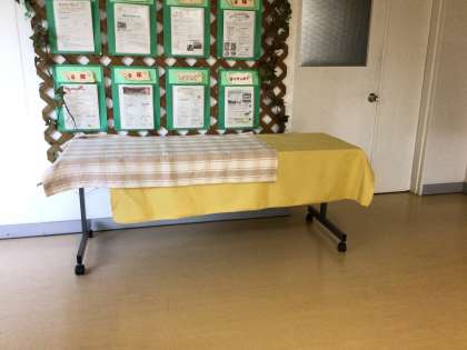 宿題と一緒に鍵盤ハーモニカを持ってきたら、写真に載せた机へ置いてください。