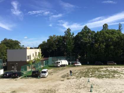 今年度は遊具撤去の関係で、運動場奥の草がキレイになり、整地された状態になりました。