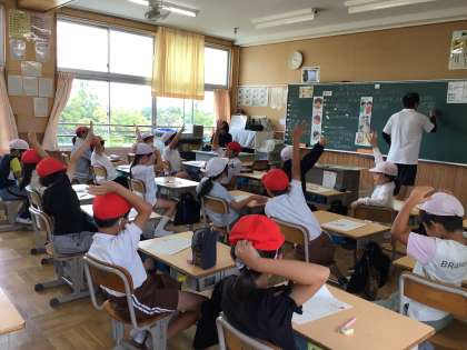 赤白帽子の色で立場を決めて自分の考えを発表しました。