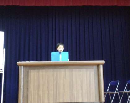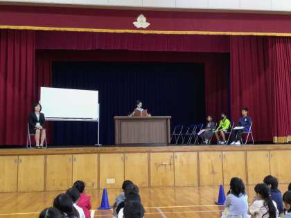 前期を振り返って1、3、5年生の代表の子がお話しました。 堂々として立派でした!