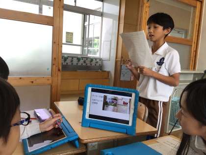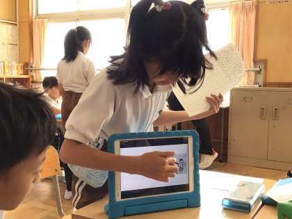 お気に入りの本をタブレットを使って紹介します。