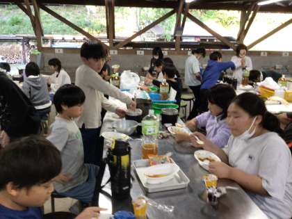 晩御飯の時間です。 ご飯もふっくら、カレーもとろりといい出来です。 おかわり続出でした。