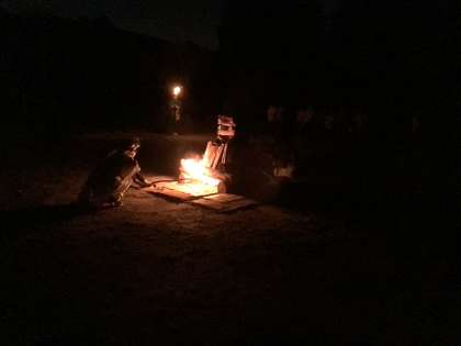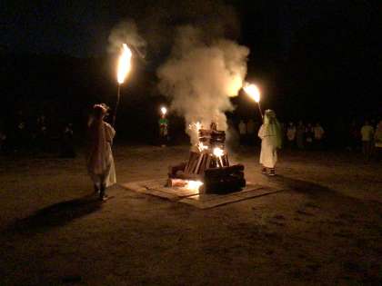 日が落ちて、山の神の子の点火で、キャンプファイヤーが始まりました。
