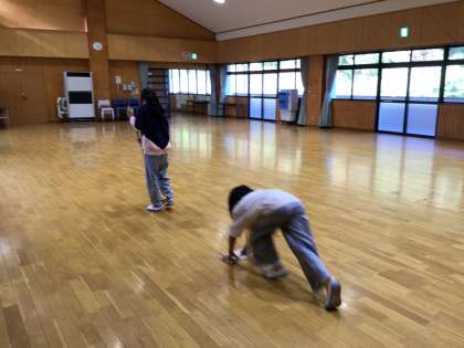 館内の清掃です。 使う前よりきれいにして返す、大事な勉強です。