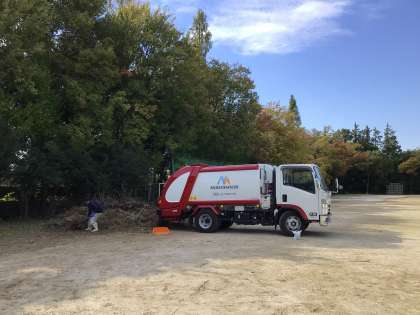 親父の会、消防団、保護者の皆様、子供たち、先生たちで取った草木を積み込んでもらいました。