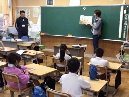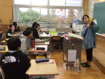 運動会練習の合間にほっと一息してお話の世界に浸ります。