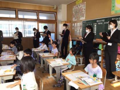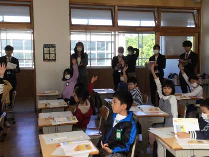 今年度新任の先生方が土橋小に集まって、2年2組の担任の先生の授業を見ました。