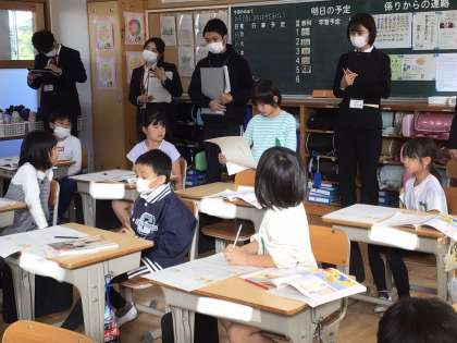土橋小へ初めて来校した初任者の先生方も、一生懸命勉強されていました。