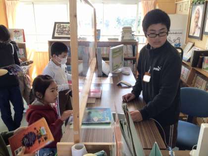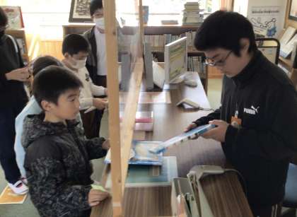 土橋っ子は本が大好きです。 貸し出し、返却、図書委員会が支えてくれています!