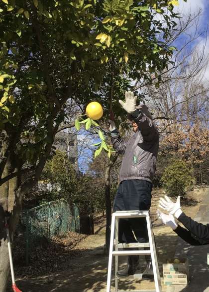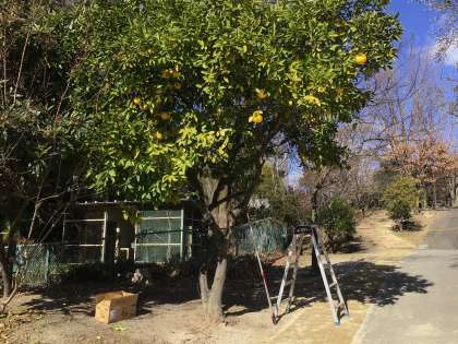 高いところに実がなっているのもありますが、実は枝にトゲがあるので子どもたちが収穫することがむずかしいです。