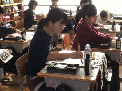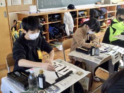 今日の書き初めは真剣に取り組む姿が見られました。