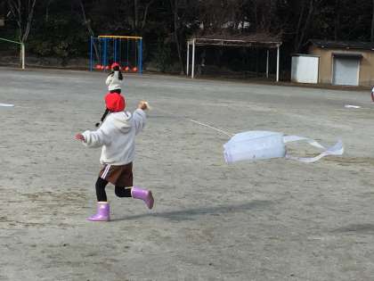 生活科で作ったたこをあげました。