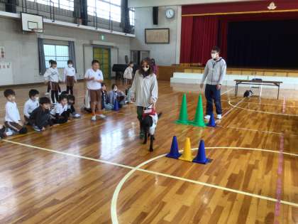 視覚障がいの方が盲導犬を連れて上手に歩く様子を見て「すごい!」の声が上がりました。