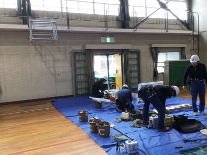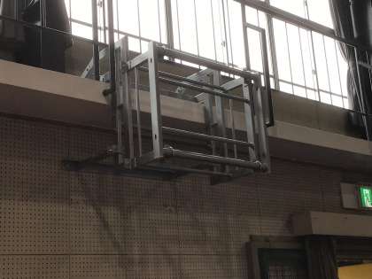 体育館のバスケットゴールの修繕が入り、取り外してより頑丈なものになりました。