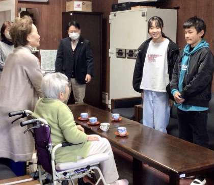 児童代表で受け取った6年生の2人も大感激で、丁寧な縫い目を眺めていました。