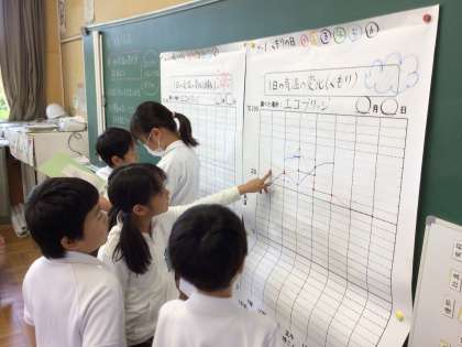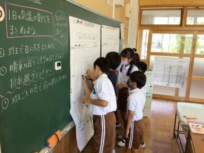 晴れの日とくもりの日の気温の変化を折れ線グラフにまとめます。