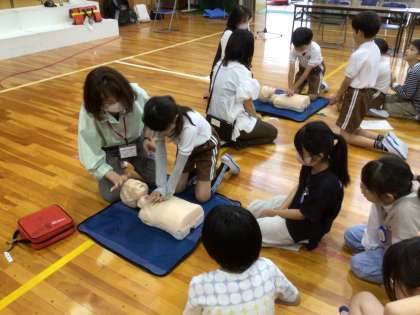 消防署の方に救命救急の対処法を教えていただきました。