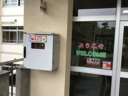 ちなみに学校のAEDは、職員玄関前にあります。