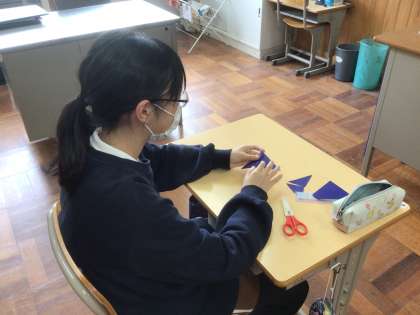 ひし形を対角線で切ると、、、二等辺三角形になりました。