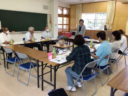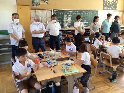土橋自治区区長、本町自治区区長、交推協会長、民生委員、主任児童委員、PTA副会長、地域コーディネーターの皆様に授業参観していただきました。その後、学校から教育目標や経営方針等について説明し、ご理解いただきました。地域の方々のお力添えにより子供たちはのびのびと育っています。