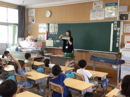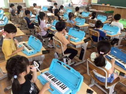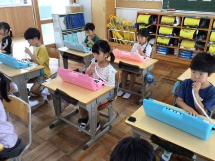 和音楽器さんから講師の先生が来て、鍵盤ハーモニカの吹き方、使い方について教えていただきました。