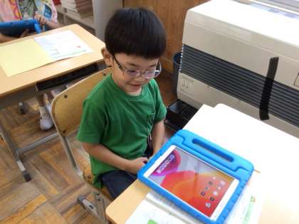 今日はタブレットの扱い方や、パスワードを人に教えない等、大切な約束を勉強しました。