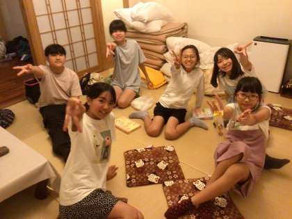 おやつのコーヒー牛乳とシュークリームを食べたり、トランプしたり、お土産紹介をしたり、と思い思いの時間を楽しんでいます。