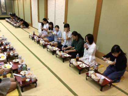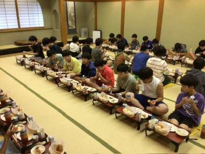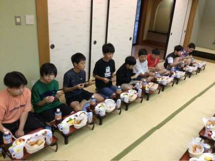 眠そうな子もいましたが、朝食が始まって、おいしくいただきながら会話も弾んでいます。