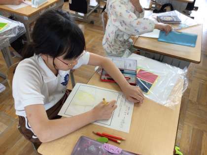 実際に透かしてみることで、違う色にみえることに気づきました。