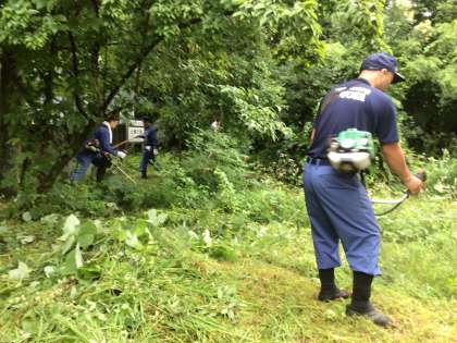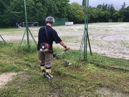 地元の消防団、土橋小おやじの会の皆様が、活動に先立って草刈りをしてくださいました。