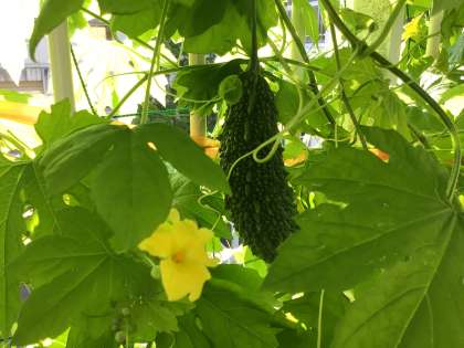 ツルレイシが大きく育っています。
