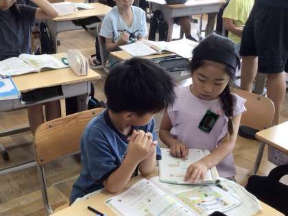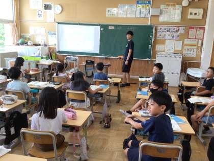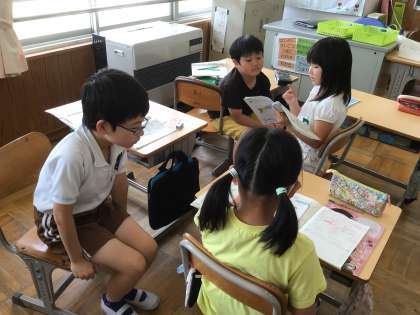 隣の子とペアになって話したり、みんなで考えたりしていました。