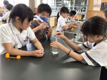 授業で理科室を使うのが初めてだったようで、嬉しそうでした。