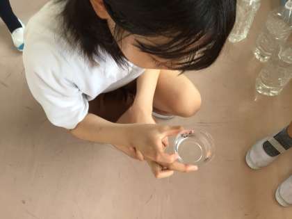 卵からかえったばかりの、小さな小さなメダカの水を換えていました。