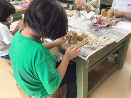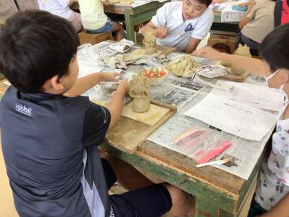 1時間目から4時間目までの4時間でシーサーを作り上げていきます。