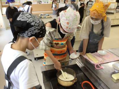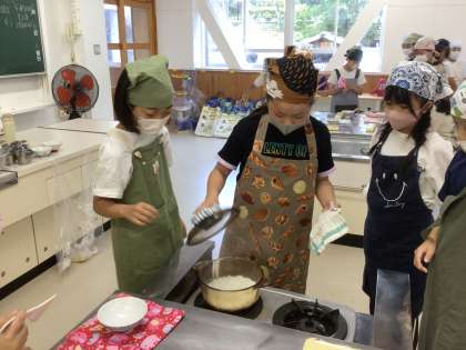 今日は1組がご飯を炊きました。 水加減もばっちりで、炊き立てのお米がつやつやしていました。