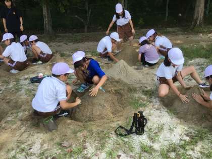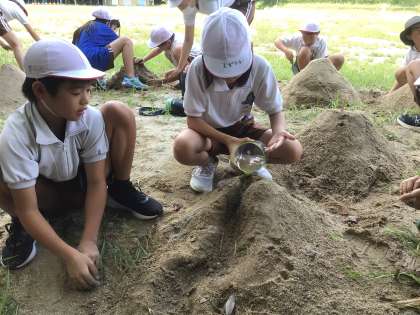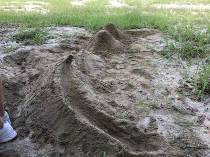 明日の実験に備えて砂場に山を作りました。