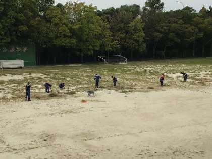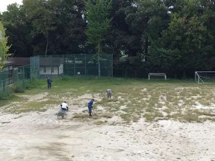 PTAの皆さんの活動前に、親父の会と消防団の皆さんが先行して草を刈ってくださっています。