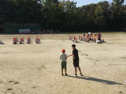 一輪車などの準備と挨拶は体育委員会が行いました。