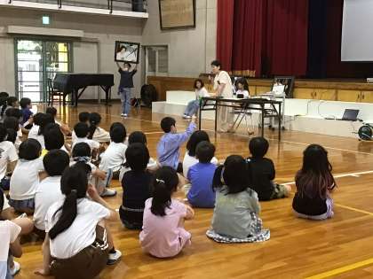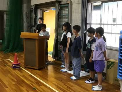 5時間目に全校児童が体育館に集まって、久野さんのお話を聞く会を行いました。