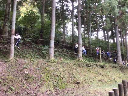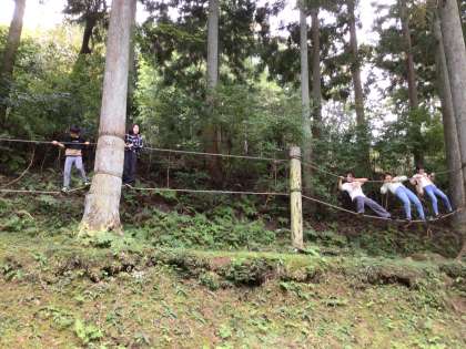 自然の中で、自然を生かしたアスレチックを楽しんでます。
