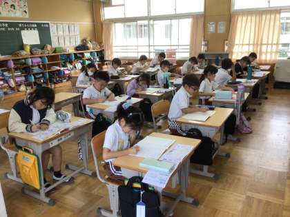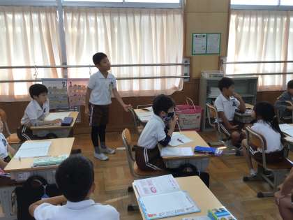 算数の学習で、「3×5」か「5×3」なのか、話し合っていました。
