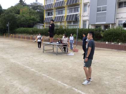 下校後、運動会の号令のかけ方や合図の出し方のタイミングなどを、皆で確認していました。