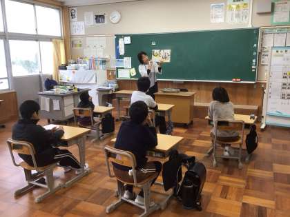 運動会練習の合間に、お話の世界にほっとする時間を作っていただきました。