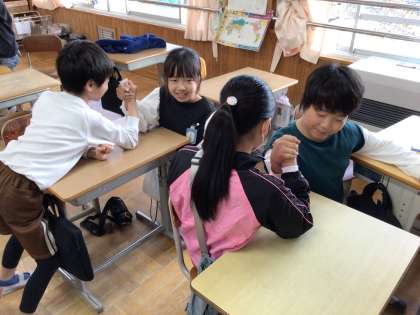 腕相撲をすると、力が入ったり、うでがかたくなったり…