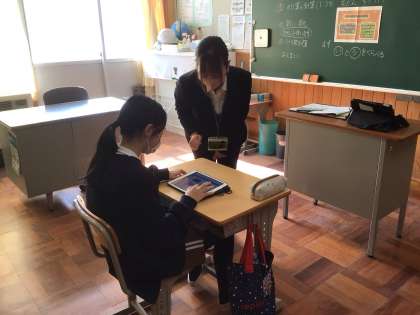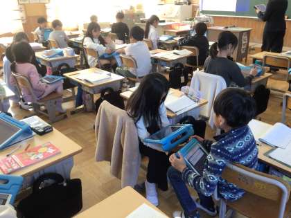 友だちや先生に説明しています。 タブレットを使うのも上手になりました。