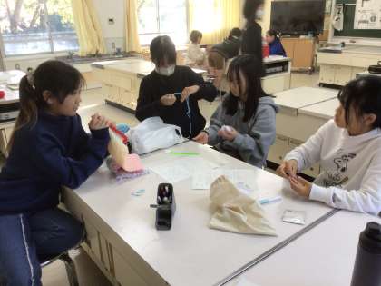 家庭科室では、手芸クラブが思い思いの作品づくりをしていました。