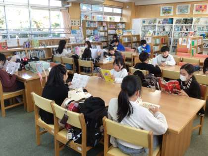図書室では、読書クラブの子たちが大好きな読書タイムに浸っていました。