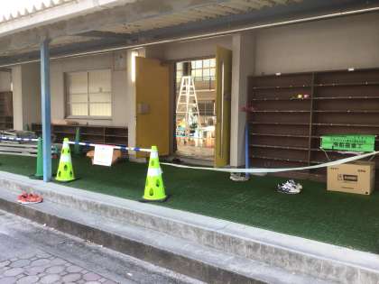 体育館の中の工事に入りました。